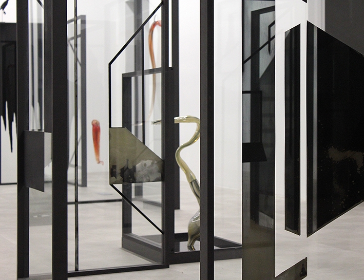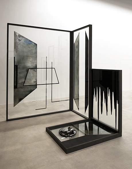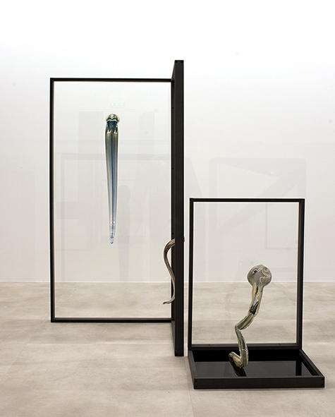 Verre, argenture, peinture, encre de chine, medium noir, pâte de cristal, verre soufflé
