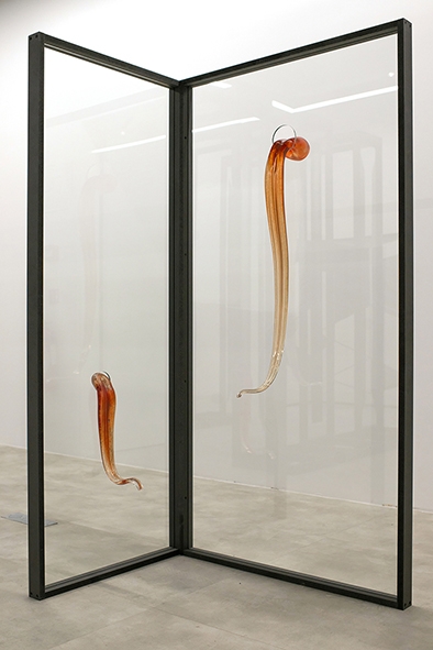 Verre, argenture, peinture, encre de chine, medium noir, pâte de cristal, verre soufflé
