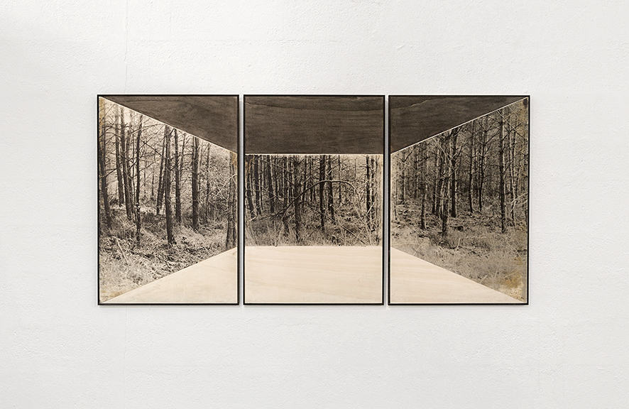 Photographie argentique sur contreplaqué de peuplier, encre de chine, medium noir 210 cm x 90 cm