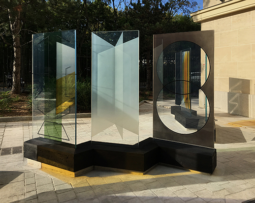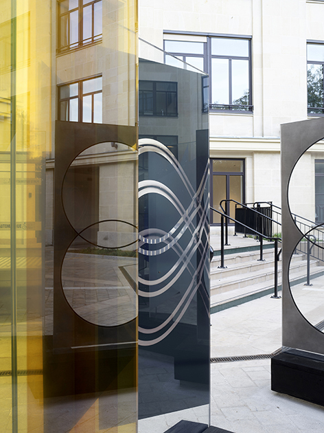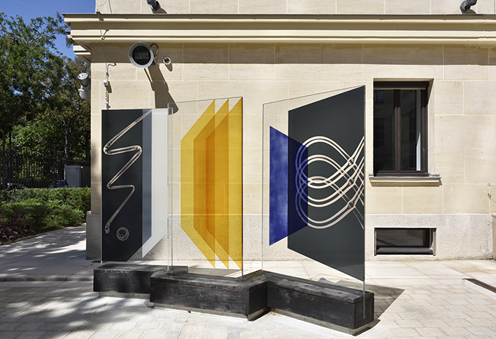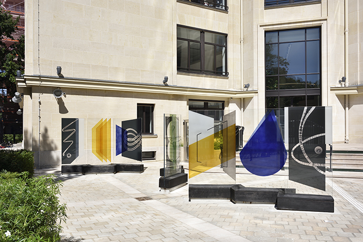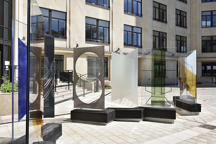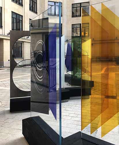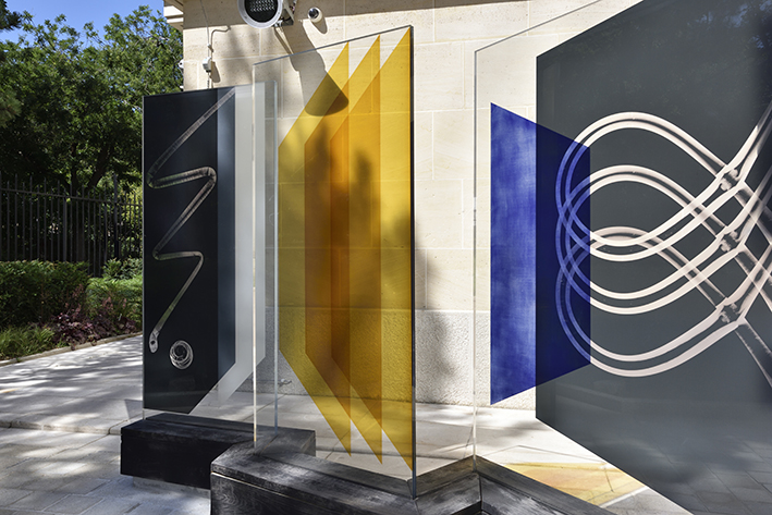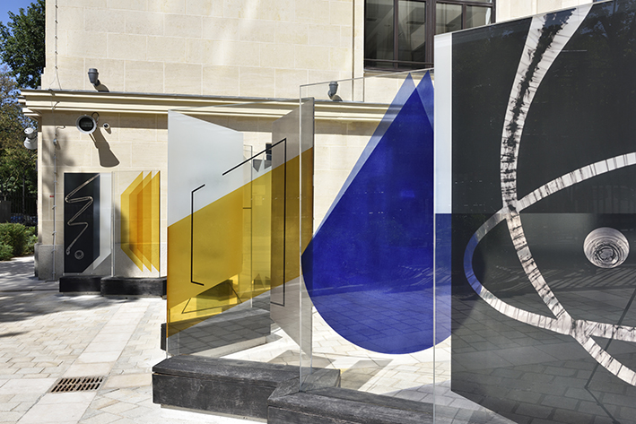 Verre, émail, cément, mousseline, grisaille, photogramme, chêne brulé, béton