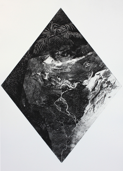 Eau forte et pointe sèche sur zinc Gravure scellée, cadre en laiton, verre, bois contreplaqué 70 cm x 50 cm Tirage unique Collection privée